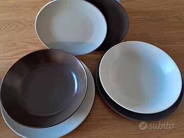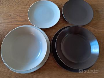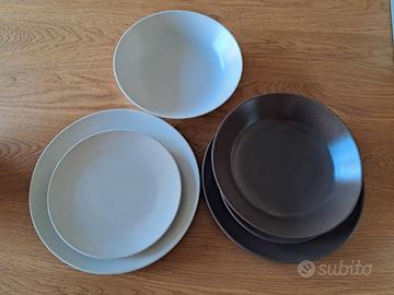 Servizio piatti Ikea marrone e beige, 12 piatti piani, 12 piatti fondi, 12 piatti da dolce. Colori in alternanza
