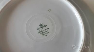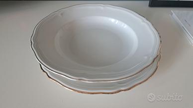Bellissimo servizio di piatti della nonna, in porcellana bavarese bianco con bordo dorato composto da