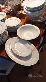 Vendo servizio piatti in porcellana Carlsbad. 12 piatti fondi, 12 piatti piani 12 piatti piccoli.Due piatti da portata ,una insalatiera e una zupppiera. Mai usati .