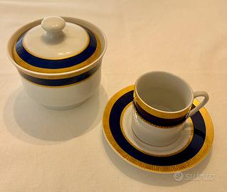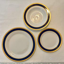Vendo servizio ceramica bianca con profili blu e oro così composto: