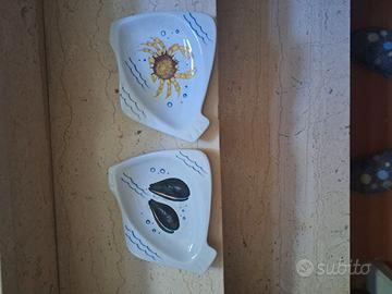 1 piatto da portata +5 piatti piccoli -dipinti a mano -in ceramica- raffiguranti Pesci- marchio Marisa