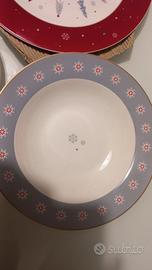 vendo servizio 18 piatti natalizi Brandani nuovi (6 fondi ,6 piani e 6 da dolce ) della collezione fiocco di neve, ancora nella loro scatola come da foto