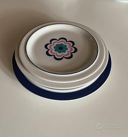 Servizio piatti per sei, composto da sei piatti piani , sei fondi e sei piatti frutta, una zuppiera, un’ insalatiera e piatto ovale, anni 70 in perfette condizioni Verrà spedito ben imballato