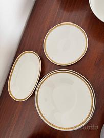Servizio da 12 in porcellana bianca con profilo in oro zecchino degli anni ‘60 , in ottime condizioni; 24 piatti piani e diversi piatti da portata, ravioliera e molto altro.