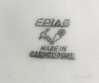 Servizio di piatti vintage, manifattura Epiag Cecoslovacchia, in porcellana fondo bianco con decori floreali, bordo dorato, composto da 29 pezzi: