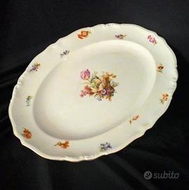1 zuppiera con coperchio - 1 insalatiera (diam. cm. 26) - 1 piatto da portata tondo (diam. cm. 34) - 1 piatto da portata ovale (cm. 32x41) - 1 vassoio piccolo ovale (cm. 15x25) - 12 piatti piani (diam. cm. 26) - 6 piatti fondi (diam. cm. 25) - 6 piatti frutta (diam. cm. 20)