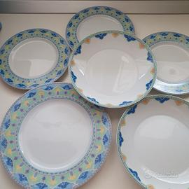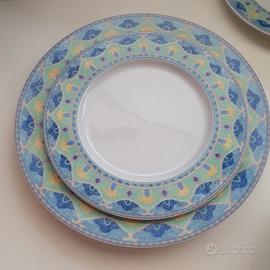Servizio piatti in fine porcellana marca Eschenbach anni 90 serie limitata "Living Colors", composto da 6 piatti piani, 6 fondi, 6 frutta. Disponibilità spedizione.
