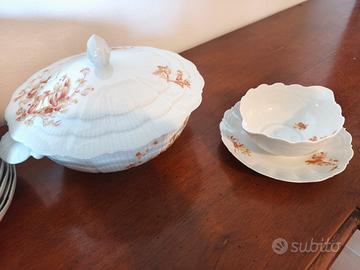 vendo servizio completo di piatti in porcellana di Limoges. il servizio è completo di: 30 piatti piani 19 piatti fondi 16 piattini 3 piatti grandi da portata 1 insalatiera 1 zuppiera 1 porta salse Tenuto benissimo