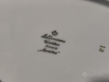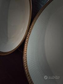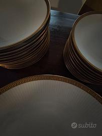Vendo servizio piatti Johann Seltmann Bavaria, in porcellana bianca con bordo in oro zecchino, composto da 44 pezzi: 12 piatti fondi, 12 piatti piani grandi, 12 piatti piani piccoli, 2 piatti da portata ovali piccoli, 1 piatto da portata ovale grande, 1 piatto da portata tondo grande, 1 terrina grande, 1 terrina piccola, 2 coperchi. Non posso effettuare la spedizione per il rischio di danneggiare la merce.