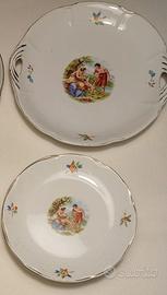 Vendo delizioso set di piatti in porcellana finemente decorata, ideale per amanti dello stile vintage, shabby chic o classico.