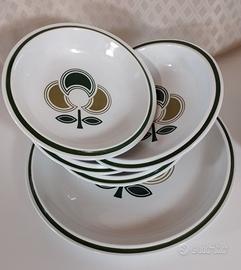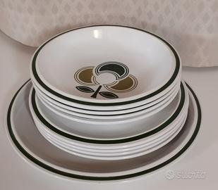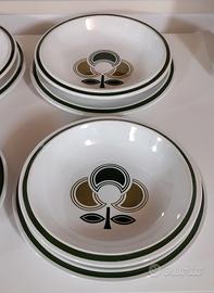 Servizio di piatti Richard Ginori con decori di Antonia Campi composto da: 4 piatti piani, 4 fondi, 1 grande piatto da portata. Per la spedizione solo punti di ritiro, no locker.