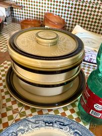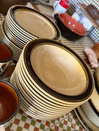 Servizio di piatti da 6 o 9 (ci sono 12 fondine) in terraglia forte richard ginori disegnato da Antonia campi collezione paiolo anni 70. 12 fondine 9 piatti piani 9 da dolce, insalatiera, zuppiera e piatto servizio grande.