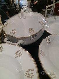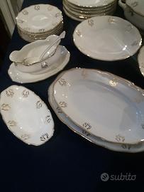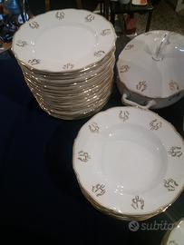 Splendido servizio di piatti Richard Ginori anni 30/40 per 6 persone con bordo e decori in oro zecchino (40 pezzi).
