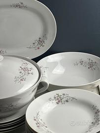 Splendido servizio Richard Ginori in fine porcellana bianca con delicato decoro floreale rosa e verde, elegante e senza tempo.