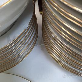 24 PIANI(DA RIV) 10 FONDI(DA RIV) 10 DESSERT ZUPPIERA INSALATIERA SALSIERA CON COPPINO 2 PIATTI OVALI GRANDI DA PORTATA 1 OVALE PICCOLO 2 CIOTOLE OVALI 1 PIATTO DA PORTATA TONDO PRESENTA QUALCHE SCHEGGIATURA