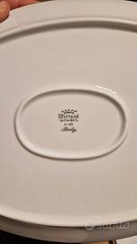 Servizio Piatti - Richard Ginori H-95 Italy Si compone di: 12 piatti piani 12 piatti fondi 11 piatti da dolce/frutta 1 piatto portata ovale (cm. 34x24) Decoro con filetto blu e bordura oro. Manifattura Richard Ginori, Doccia, XX secolo.