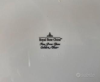 Servizio Piatti da sei - Royal Bone China - Golden Blue Trentanove pezzi: Piatti Fondi, Piani, Dessert, Coppette, Tazzine Caffè e Piattini, Due Vassoi e Zuppiera. Solo consegna a mano