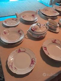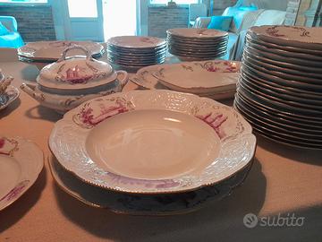 Splendido servizio di piatti da 12, pregiatissima ceramica Rosenthal, bordata oro zecchino. Condizioni ottime, poiché nuovo inutilizzato. Di seguito elenco dei pezzi: 24 piatti piani, 12 piatti fondi, 12 piatti frutta, due zuppiere, 1 salsiera, due vassoi (uno grande ed uno piccolo), 4 piatti da portata (2 tondi e 2 quadrati). Consegna solo a mano, visionabile a Francavilla a mano. Per maggiori informazioni inviare un messaggio in chat.