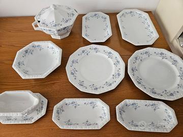 Vendo servizio in porcellana Rosenthal prodotto in Germania serie Maria anni '50/'60 composto da 7 piatti da portata di varie forme e misure, salsiera, zuppiera, 36 piatti piani, 12 fondine e 12 piatti piccoli, tutti perfetti.