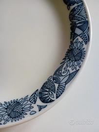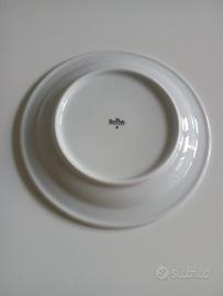 Servizio piatti Rosenthal porcellana composto da 26 pezzi: 6 piatti piani, fondi, piattini frutta e piattini dolce e 2 insalatiere. Un piatto fondo che si era scalfito e’ stato sostituito con altro piatto sempre fondo bianco con bordo blu. Da visionare da vicino. Consegna a mano non spedibile perché fragile