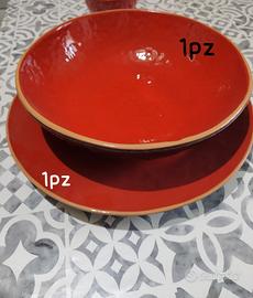 servizio piatti rustici, da 12 coperti in ceramica, colore terracotta.