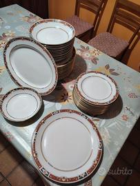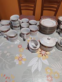 Vendo raro servizio vintage completo in porcellana, elegante e ben tenuto, con decorazioni classiche e finiture dorate.