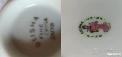 Bianco con dipinto di violette e bordino dorato. Marchio Geisha Giapponese. Fine porcellana. Acquistata negli anni ’60.