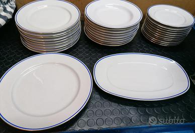 Servizio di piatti Tognana, per 9 persone ottima porcellana Made in Italy Come nuovi composti da: Piatti Fondi 9 Piatti Piani 9 Piattini 11 Più 2 piatti grandi da portata uno tondo ed uno ovale, Tutto in perfetto stato come da foto Porcellana bianca con decoro Blu e nei lati bordo d’oro Prezzo Affare ,30 euro Non Trattabili,no perditempo!!! GRAZIE! Ritiro zona Vomero.