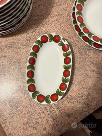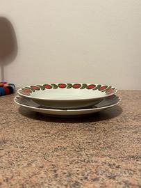 Vendo set di piatti in ceramica, con decorazione vivace rosso e verde sul bordo.