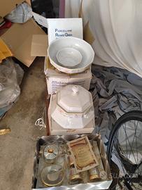 Servizio piatti in porcellana vintage completo (12 fondo, 12 piano e 12 frutta) più insalatiera, zuppiera e piatti di portata.