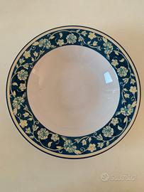 Vendo splendido servizio di piatti in Genuine Stoneware (gres porcellanato) della celebre marca Vitromaster, modello Lucerne, prodotto in Indonesia negli anni '90. Il set si distingue per un raffinato decoro floreale classico con bordi blu cobalto e dettagli dorati, perfetto sia per occasioni speciali che per dare un tocco elegante alla tavola quotidiana.