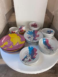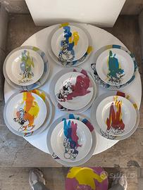 Vendo servizio piatti Walt Disney da collezione composto da: 7 pezzi piatti piani (Paperino, Minnie, Paperina, Pluto, Pippo, Qui Quo Qua, Zio Paperone) 8 pezzi piatti fondi (Stessi soggetti dei piatti piani + Topolino) 6 pezzi sottopiatti, colore in alcuni punti rovinato ma piatti integri (Paperino, Minnie, Paperina, Pluto, Pippo, Zio Paperone) 7 pezzi ciotole grandi (Paperino, Minnie, Paperina, Pluto, Pippo, Qui Quo Qua, Zio Paperone) 7 pezzi ciotole piccole (Paperino, Minnie, Paperina, Pluto, Pippo, Qui Quo Qua, Zio Paperone) Ritiro a Torino - zona Parella