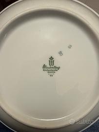 Vendo elegante servizio di piatti in porcellana Winterling Kirchenlamitz Bavaria (anni ’80), originale tedesco, con decorazione classica bordo blu e finiture dorate.