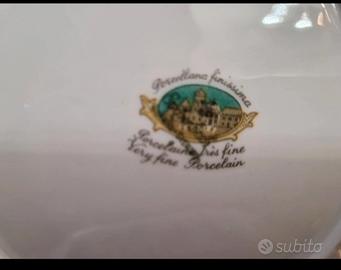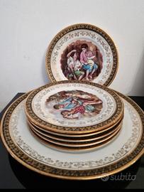 servizio 6 piattini + 1 piatto piano vintage in porcellana finissima con decoro filo oro.