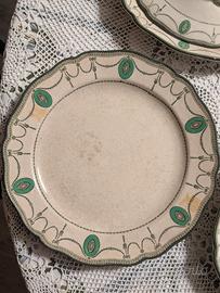 Design:Stile Art Déco, caratterizzato da un elegante bordo smerlato, medaglioni verdi e festoni su base color avorio.