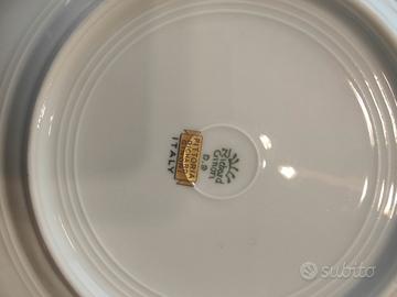 il set è composto da 13 piattini piani, 13 tazzine e 12 piattini fondi.