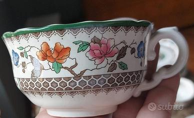 In vendita raffinato servizio da tavola in porcellana fine inglese firmato Copeland Spode, nella celebre fantasia floreale "Chinese Rose". Il set è composto da: 12 tazze da tè/caffè con manico, decorate con motivi floreali colorati tipici del design "Chinese Rose" 12 piatti da dessert 12 piatti piani 4 piatti da portata quadrati con manici Ogni pezzo è decorato con bordi delicatamente sagomati e una ricca decorazione floreale multicolore, in perfetto stile orientaleggiante, con bordo leggermente ondulato e profili rifiniti. Il servizio è in ottime condizioni vintage, senza crepe né sbeccature visibili. Perfetto per collezionisti, amanti della tavola raffinata o per dare un tocco di eleganza classica a pranzi e cene speciali. Ritiro a mano disponibile