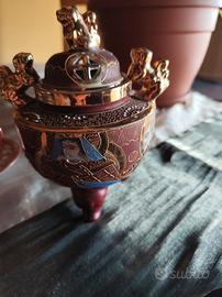 servizio caffè 5 tazzine con piattino porcellana Gaiwan presentano una lifotania di geisha sul fondo della tazza. La zuccheriera porcellana giapponese Satsuma. La teiera in porcellana giapponese Kutani.