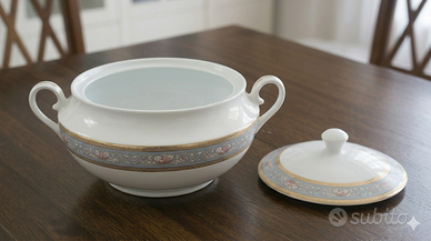 Il marchio Irabia è un nome storico della porcellana spagnola, noto per la produzione di alta qualità a Pamplona sin dal 1967. Il servizio ha un design classico con decorazioni floreali a fascia azzurra e bordi in oro, uno stile molto ricercato per tavole formali o amanti del vintage curato.