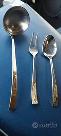 Servizio posate da 12 persone Inoxpran totale 75 pezzi: 12 coltelli, 12 cucchiai, 12 forchette, 12 cucchiaini caffè, 12 coltello e forchetta frutta, 1 mestolo, 1 cucchiaio e forchetta insalata.