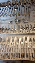 servizio di posate composto da 75 pezzi in acciaio inox 18/10 con laminature in oro zecchino 24 karati