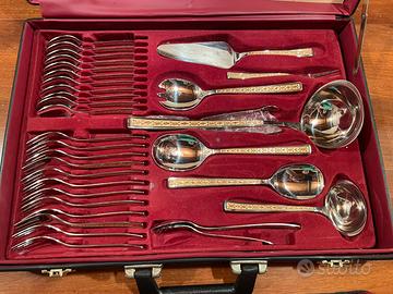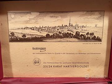 Servizio posate da 12, marca Solingen, in acciaio e oro