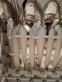 Prestigioso servizio di posate 49 pezzi: 12 coltelli, 12 cucchiai, 12 forchette, 12 cucchiaini e 1 mestolo da portata.