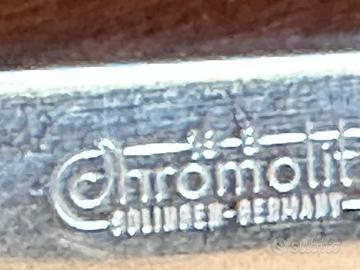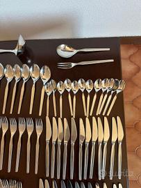 Servizio posate Chromolit Solingen Germany CM06 in acciaio inox composto da 75 pezzi di cui 12 cucchiai, 12 forchette x antipasti, 12 forchette x il secondo, 12 coltelli x antipasti, 12 coltelli x il secondo, 12 cucchiaini x il dolce, 2 posate da portata ed 1 mestolo x minestra.