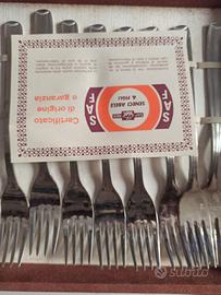 Servizio posate per 12 per un totale di 75 pezzi. Nuovo, mai usato conservato nella scatola originale. Non manca di nulla. Acciaio inox.