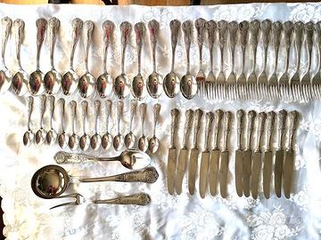 Servizio posate da 12 (come da foto) placcate argento anni 60/70 mai avuto occasione di utilizzarle (regalo di matrimonio ) ideali per ristorante di lusso o amante del vintage oppure per fare bella figura in tavola . Premetto che per motivi di spazio non ho la confezione originale, sempre tenute nella cassettiera ed ogni tanto lucidate. E' possibile visionarle senza impegno.