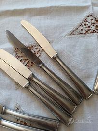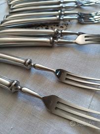 servizio da posate Rostfrei con piccola modanatura sul fondo del manico . il set si compone di 12 forchettone e 12 coltellini.