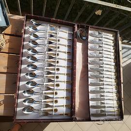Servizio di posate Gottinghen vintage da 12 persone, 81 pezzi acciaio 18/10 ed oro zecchino 24K con certificato di garanzia. Molto elegante. Nuovissimo, mai usato!!!