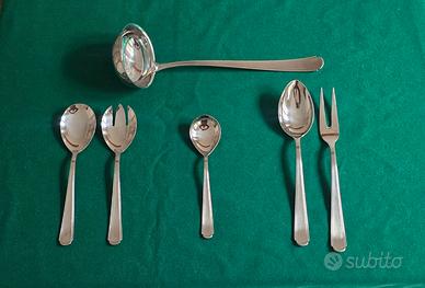 •Posate da servizio assortite: mestolo, 2 posate da insalata o antipastiera, forchettone e cucchiaione da carne, cucchiaio per salsa