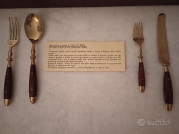 Servizio posate Lord Nelson in legno di rosa e bronzo lavorazione a mano.